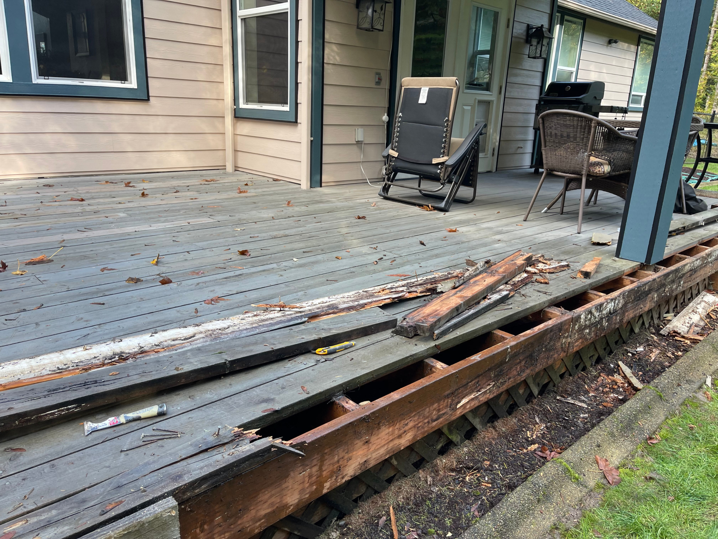 Since rot affects both the beauty and integrity of a deck, they require annual maintenance to prevent water and UV exposure damage. Rotting decks become soft, cracked, split, and discolored.