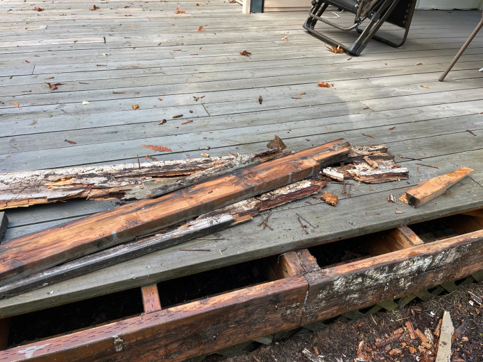 Weather damage: Rotted wood is more vulnerable to the elements, such as rain, sleet, hail, and high winds.